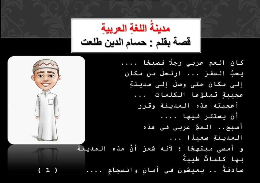 كان العم عربي رجلًا فصيحًا، يحبُ السفرَ، ارتحلَ من مكان إلى مكان حتى وصل إلى مدينة عجيبة تملؤها الكلمات.