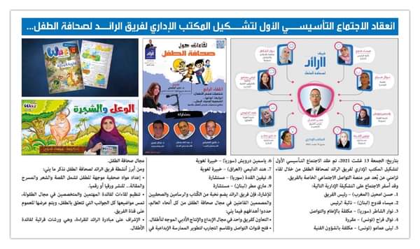 و تقرير صحفي بالكلمة و الصورة و الأرقام حول ( انعقاد الاجتماع التأسيسي الأوّل لتشكيل المكتب الإداري لفريق الرائد لصحافة الطفل )