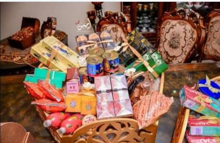وتعرض أسرة العروس العنقريب الفاخر بفرشه الجميل مع قطعة حديدة مستديرة فضية اللون عليها أطباق الحلوى والتمر الفاخر والعطور السودانية المتنوعة، على رأسها «الصندلية»، و«فلور دامور»، وعطور باريسية بجانب «مسحوق الصندل والمحلب وأكواب الحليب والحلوى وأبخرة» تصنع خصيصاً من أعواد الصندل الأصيل لتعبق أجواء الأمسية التى يتزايد الإقبال على حضورها لأهميتها الكبرى.
