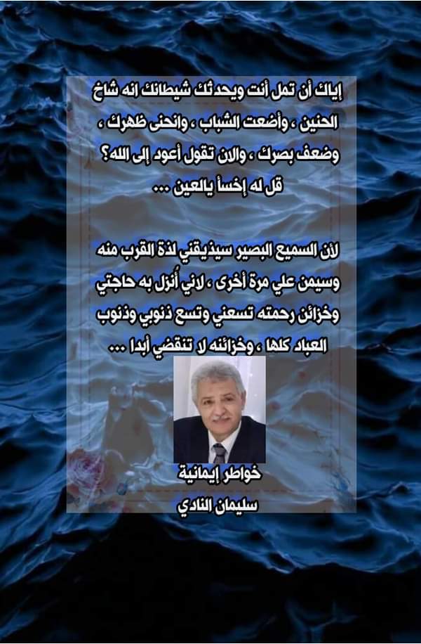 إياك أن تمل أنت ويحدثك شيطانك انه شاخ الحنين ، وأضعت الشباب ، وانحنى ظهرك ، وضعف بصرك ، والآن تقول أعود إلى الله؟