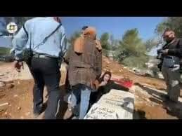 ١٢- والدة المقدسي علاء نبابتة تتشبث بقبره وترفض مغادرته ،وقوات الاحتلال أبعدها عنه بالقوة لتجريف ما حوله.