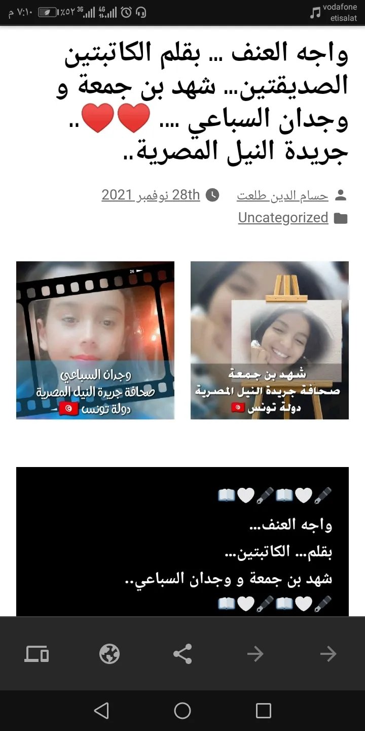بكلّ حبّ فتح الأستاذ: حسام الدين طلعت أحضانه ، و معه فرشتْ جريدة الحرف الرّاقي المصريّة من قلب مدينة القاهرة السّاحرة صفحاتها بساطا من الحرير لتستقبل أبناء حاجب العيون من محافظة القيروان / تونس🇹🇳 تنشر لهم شتّى النصوص بالكلمة و الصّورة ، ثم تقدّم هويّتهم إلى أبناء القاهرة ـ مصر🇪🇬 و هم الذين ينبلجون من عراقة النّيل العظيم أخلاقا و معرفة و علما ، و بمرور أعداد الجريدة الإلكترونيّة أزهرتْ من مسكلياني أقلام تؤرّخ للمكان و الزّمان بأسلوب متوهّج فتفاعل معها القرّاء من شتّى بلدان الوطن العربي كأروع ما يكون و الفضل يعود إلى هذه الجريدة المصريّة الرائدة التي رحّبتْ بمبدعي حاجب العيون في قائمة فيها…