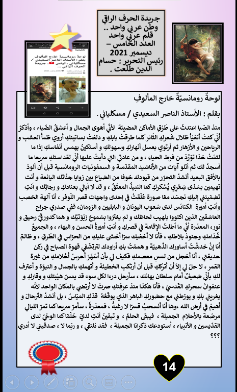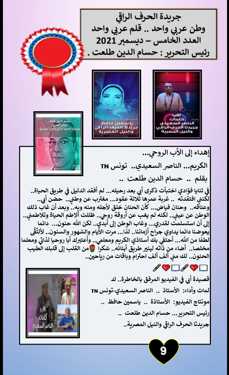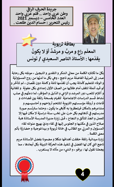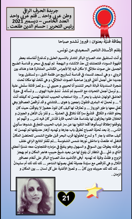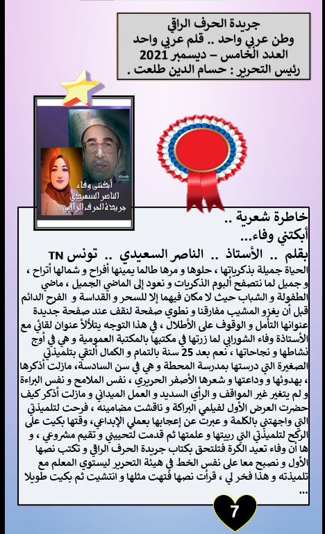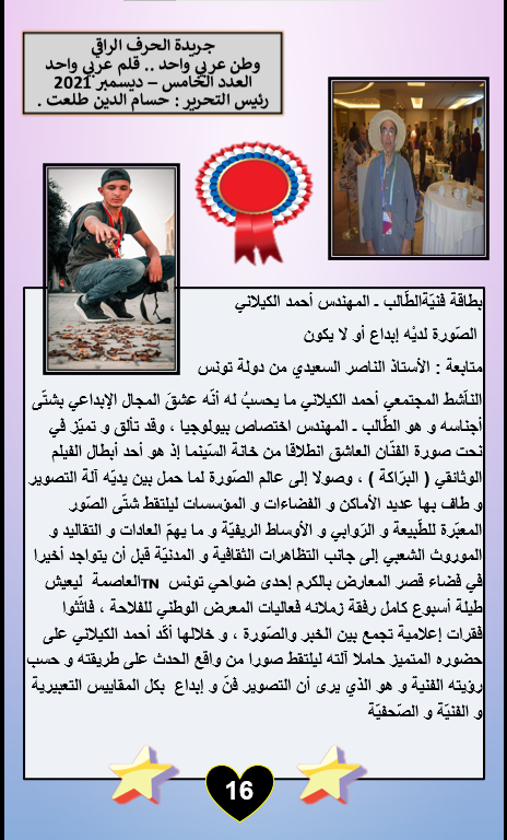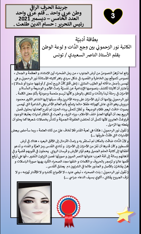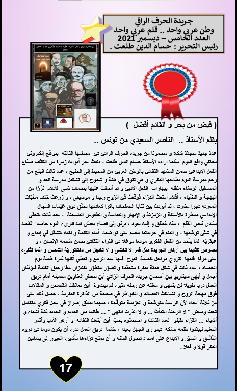 تحتفي جريدة الحرف الراقي كل شهر بمبدع من مبدعيها ..