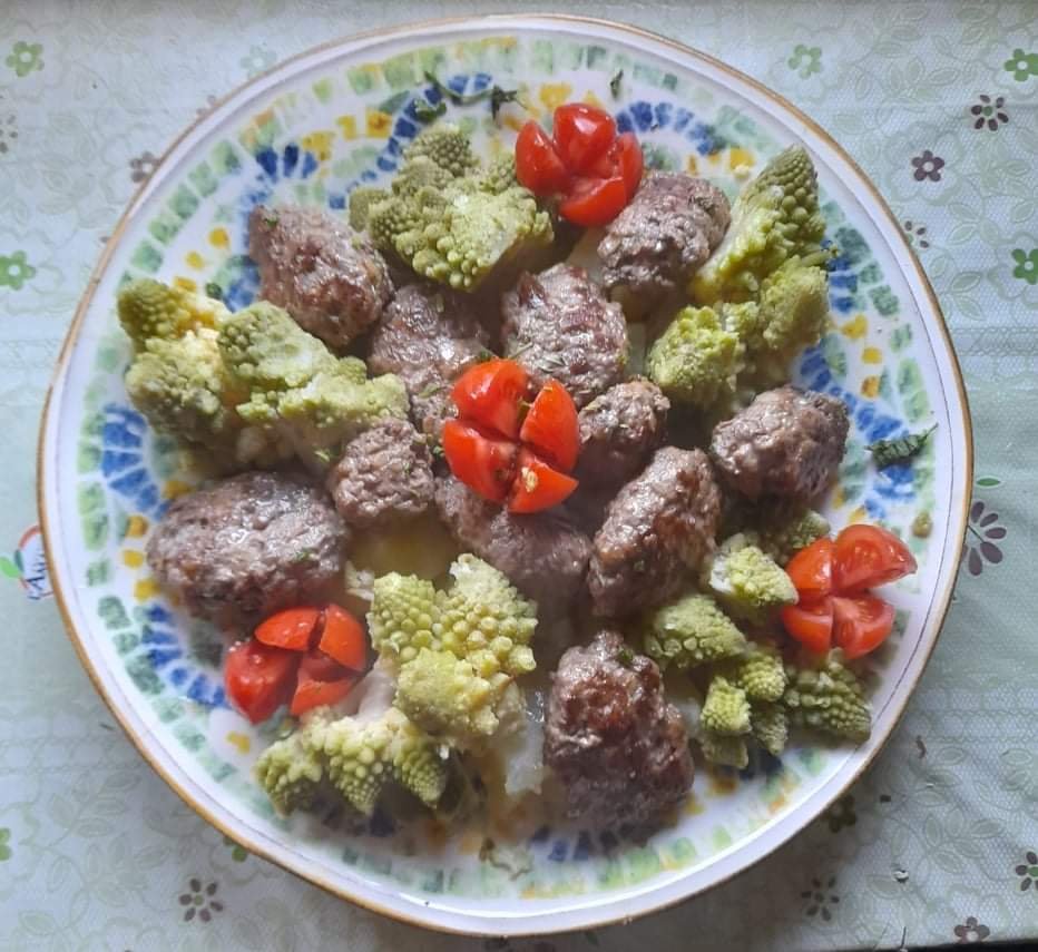 تشكل اللحم إلى كرات صغيرة الحجم وتتم إضافة الصلصة إليها.