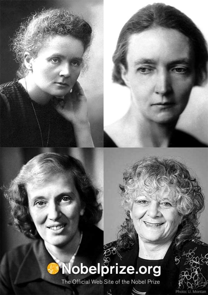 1- ماري كوري (1867 -1934)، عالمة فيزياء وكيمياء بولندية المولد، اكتسبت الجنسية الفرنسية فيما بعد. وهي أول امرأة حصلت على جائزة نوبل، كما أنّها الوحيدة التي حصلت على جائزتي نوبل في مجالين مختلفين.