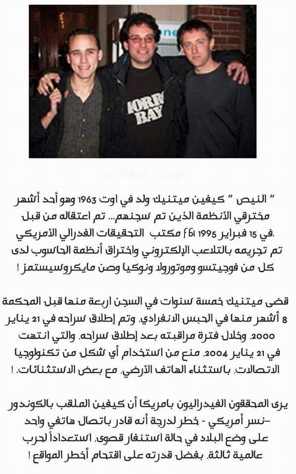 كيفين ميتنيك) عالم حاسوب ومستشار أمن الحاسوب، أمريكي، من أكبر الهاكرز في العالم ولد في 6 أيلول/سبتمبر عام 1963 وهو أحد أشهر مخترقي الأنظمة .