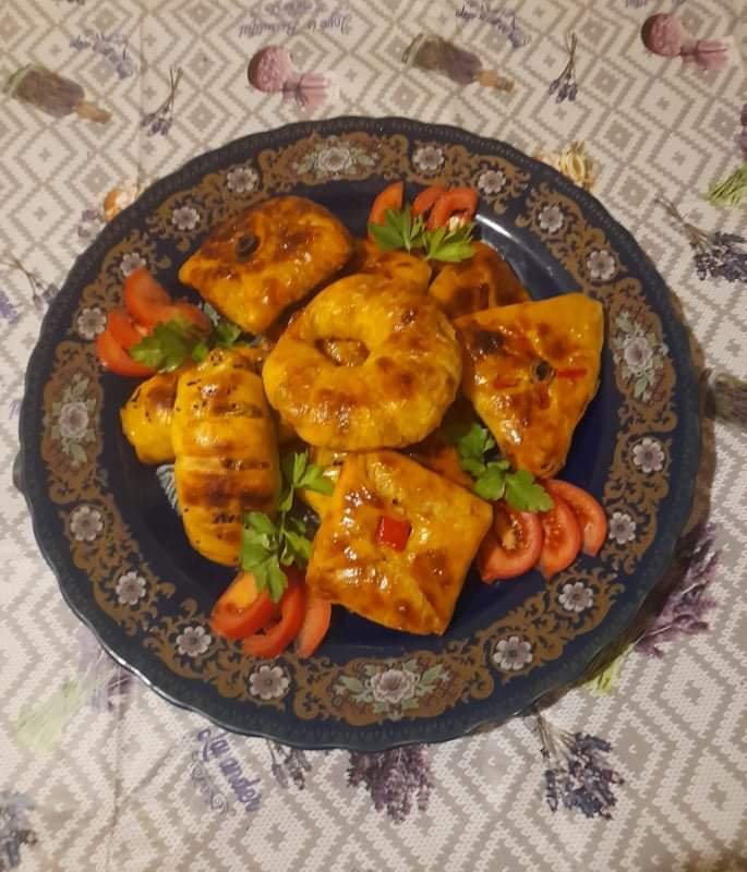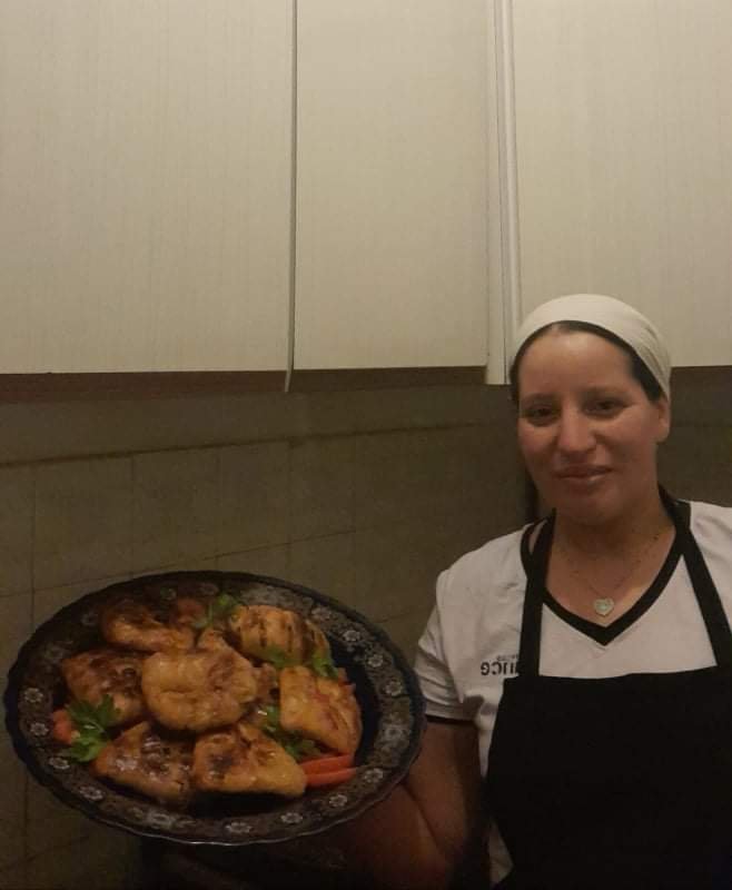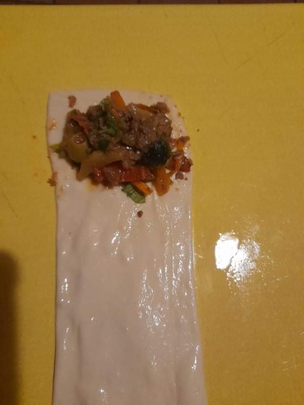 توابل بعدما تنضج نتركها حتى تبرد ونضعها في العجين الموقر