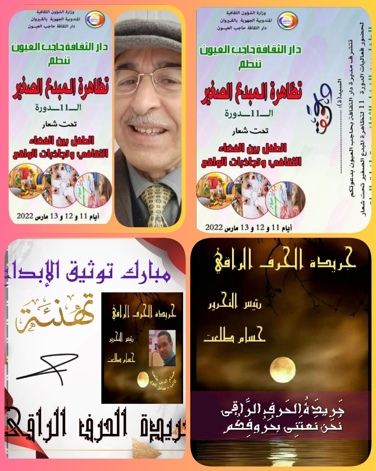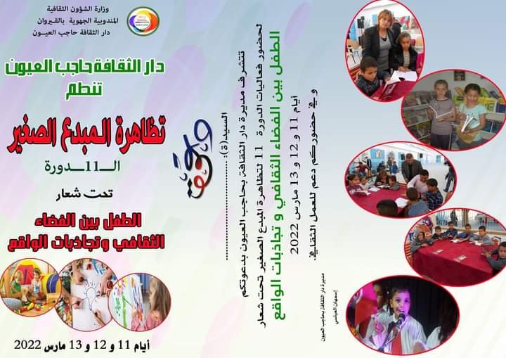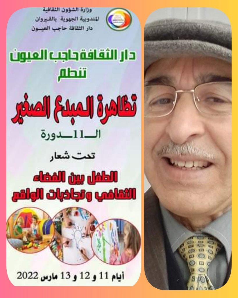 بعيون طفولة حالمة بكلّ ما فيها من قداسة و عفويّة ، و تحت اشراف المندوبية الجهوية للشؤون الثقافية بالقيروان ، نظّمتْ دار الثقافة بحاجب العيون بإدارة الأستاذة إسمهان العباسي ” تظاهرة المبدع الصغير” في دورته الـ 11 تحت شعار(الطفل بين الفضاء الثقافي و تجاذبات الواقع ) على مدار ثلاثة أيام كاملة تزامنتْ مع عطلة الربيع ، حيث وجد الأطفال الفرصة سانحة ليصنعوا الحدث ، بآعتبار أن الملتقى منهم و إليهم في صلب فقرات متنوعة شكلا و مضمونا ، انطلقتْ في يومها الأوّل بعرض تنشيطي أمّنته رياض أطفال المنطقة ، و فقرة موسيقية قدمتها فرقة الأغالبة ( البنقا ) و تبعتها ورشات فنيّة من إبداعات الطفولة في الرسم و الرسكلة و القصة ، ثمّ فُسح المجال لحلقة حوار في صلب محور التظاهرة حول محاضرة الأستاذ المنجي الزايدي ، و تواصلتْ في يومها الثاني مع أمسية تنشيطية في شتى الفنون في شكل مباريات ثقافية بين مدرستيْ القرية و المبيت مع وصلات غنائية لكورال روضة ” مملكة الأطفال ” بتأطير من العازف جلال المطيري ، و النّهاية كانت مع الحكاية الشعبية من تقديم الأستاذة سارة السباعي ، أمّا اليوم الثالث و الختامي فقد اشتمل على مسابقة ( الكاتب الصغير ) و عرض عمّي نوّار قبل فسح المجال لتكريم الفائزين في جو بديع ختم كأبهى ما يكون على ملتقى طفوليّ كامل الأوصاف قد حقق أهدافه و غاياته بفضل أسرة الإشراف و التنشيط و التأطير رفقة أطفال صغار حالمين بالفرحة و التألق و الامتياز، أطفال مدينة حاجب العيون ، مدينة الشّعر و الإبداع و الشّعراء .