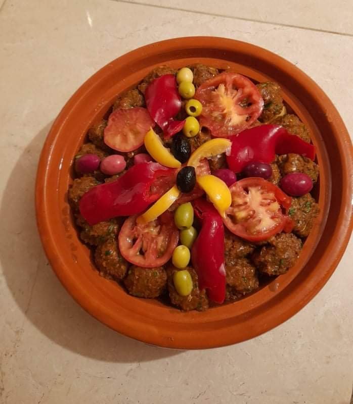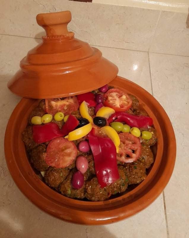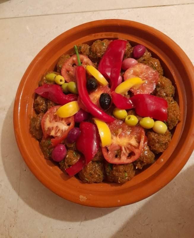 نضع في الطاجين الجزر والبطاطس مقطعة دوائر ونضع القليل من الثوابل ، ثم نظيف كويرات السردين ونزينه بالفلفل والطماطم والزيتون والليمون