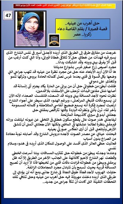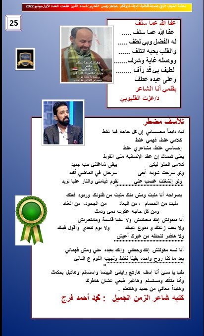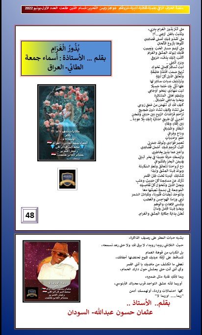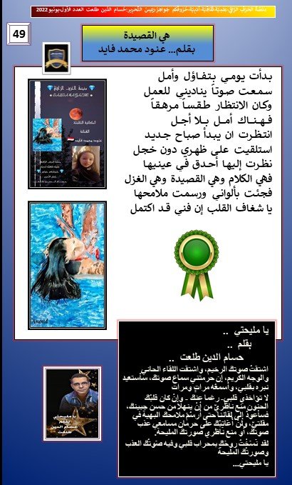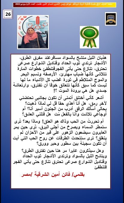 أشتاق سلامًا ... يعانق كفينا .... أشتاقُ نهارًا ... تسطع شمسه ... في عينيكِ ... أشتاق طريقًا ... تجمعنا ... خطواته ... أشتاقُكِ سكنًا ... تأوي إليه الروحُ ... أبدا ... 💜💛💙💖💚 حسام الدين طلعت عرض مقالات أكثر