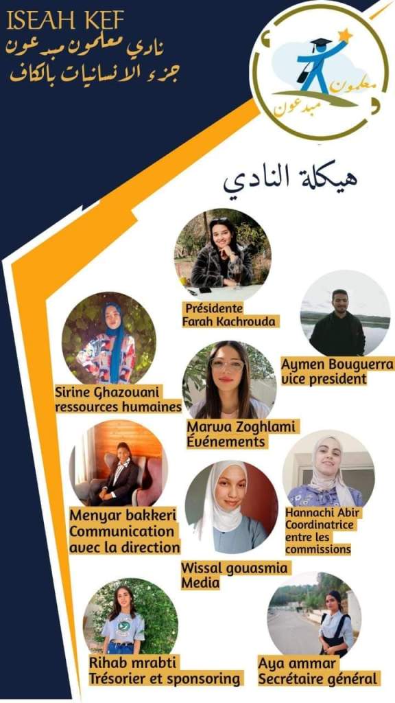 في ثوب جديد و برؤية متطورة وبرنامج ثري عنوانه من صلب الثقافة والإبداع والتجديد تعود الحياة إلى روح نادي معلمون مبدعون جزء الإنسانيات بالكاف عروس الشمال الغربي من البلاد التونسية على نخب موسم دراسي وثقافي يكتنز شتى الأنشطة والتظاهرات والملتقيات غاية أن يتجانس الفعل التعلمي – البيداغوجي مع الحراك الفكري والإبداعي طالما طالب هذه المدرسة الرائدة هو معلم الصبيان مستقبلا .