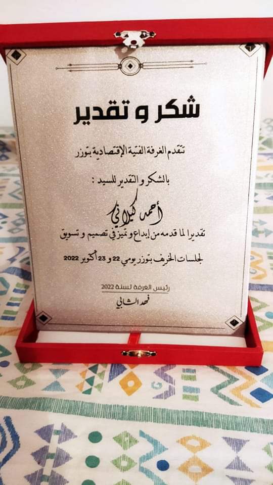 أحمد الكيلاني كان حاضرا أخيرا ليبصم على الإبداع والتميز في صلب تصميم وتسويق جلسات الخريف بتوزر تحت إشراف هيئة jci وينال شهادة شكر وتقدير لقاء ما قدمه.