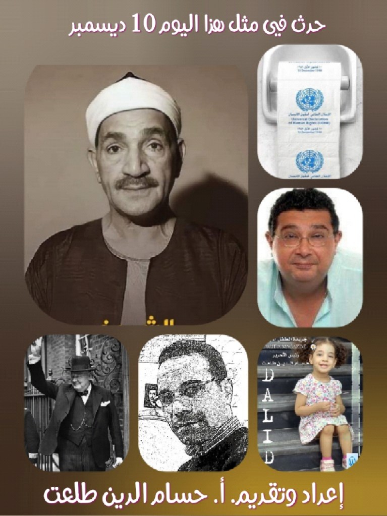 يوافق اليوم، ذكرى إصدار الأمم المتحدة الميثاق العالمي لحقوق الإنسان، وكذلك ذكرى افتتاح خزان أسوان، والذي يختلف عن السد العالي، وكان أول سد مشيد في العالم، كما تحل اليوم أيضا ذكرى وفاة الشيخ طه الفشني أحد أعلام الإنشاد الديني وقراءة القرآن في مصر.
