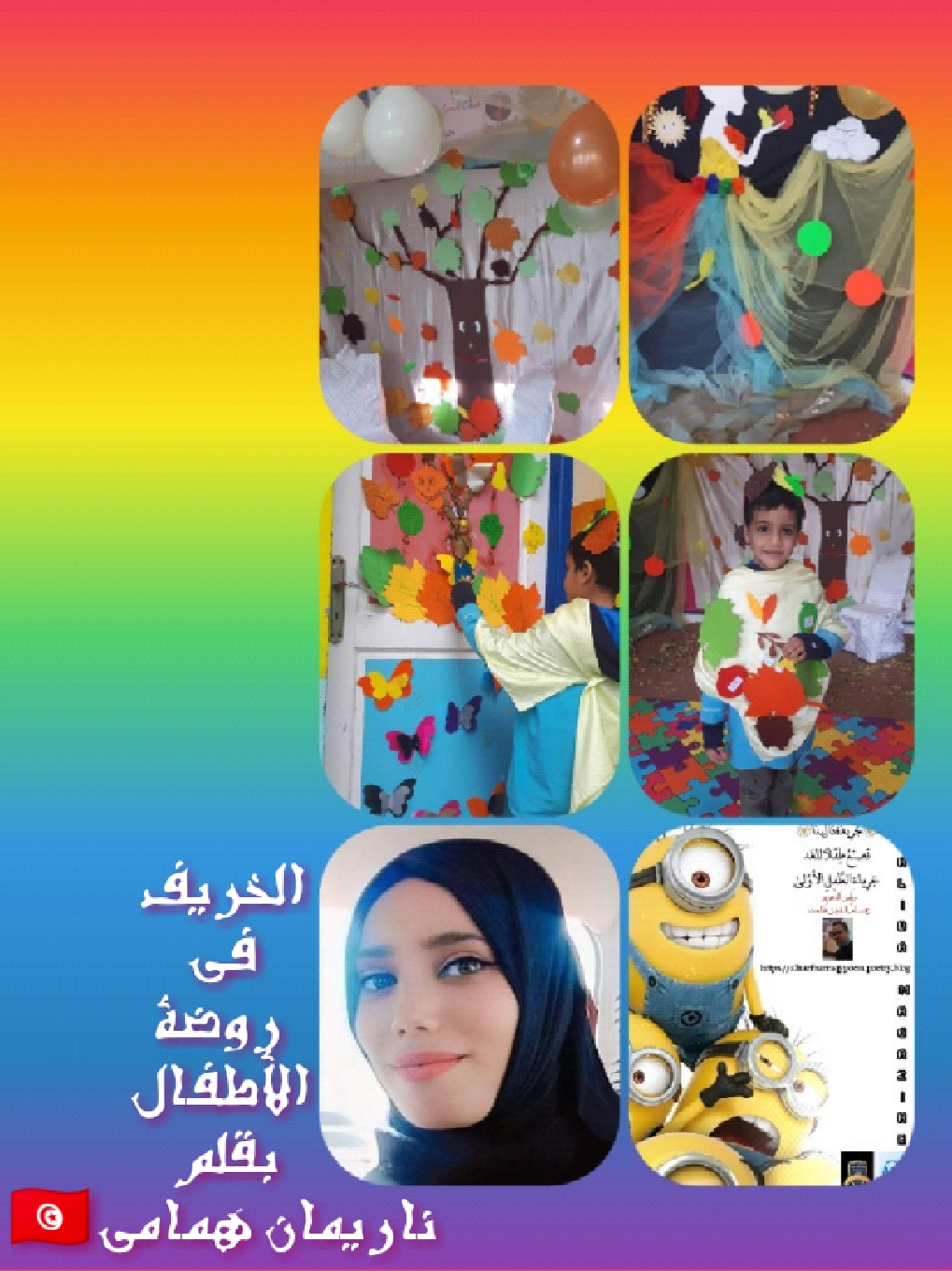 طرق الخريف أبواب الطبيعة ودخل روضة الأشبال فاستقبله أطفالها بحرارة وفرحة بريئة، سلّم عليهم وأخذ يحدثهم قائلا: ” أنا فصل من فصول السنة، عمري ثلاثة أشهر سبتمبر، أكتوبر ونوفمبر، إخواني ثلاث: الربيع، الصيف والشتاء، كما أن غلالي كثيرة ومفيدة من رمان وتفاح وإجاص وتمر.