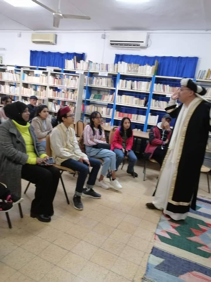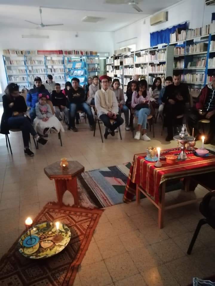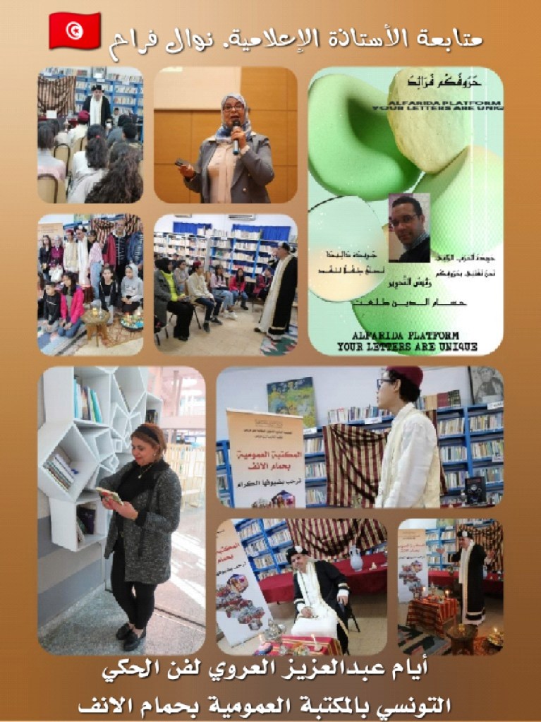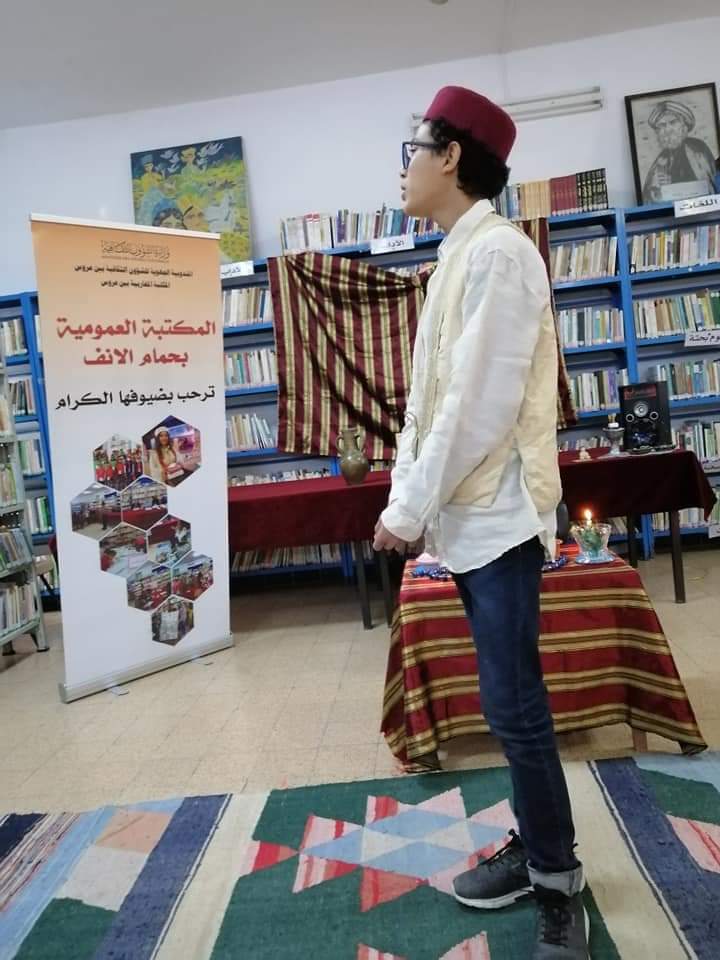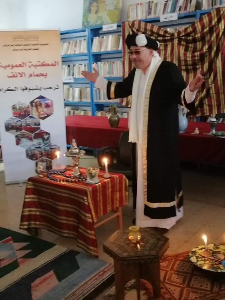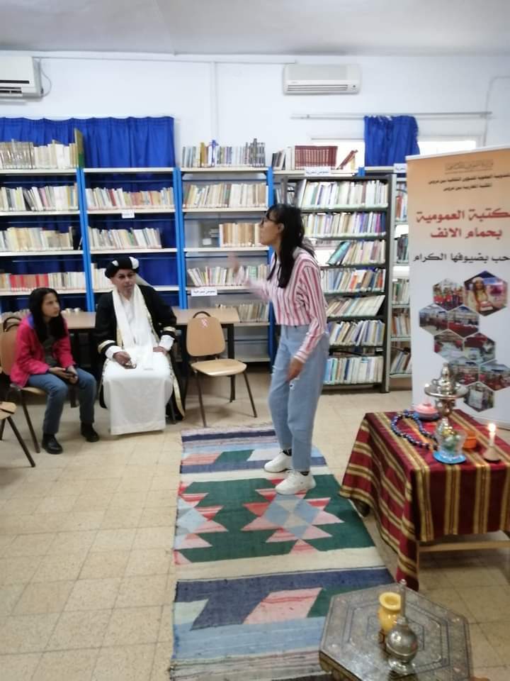 عرض للحكواتي عماد العياري وذلك في إطار الدورة الرابعة لأيام عبد العزيز العروي لفن الحكي، وقد قدمت الحكواتية الشابة: سوار الهذلي والحكواتي الشاب: محمد أمين الحمادي حكايات من التراث الشعبي التونسي بالمكتبة العمومية بحمام آلانف.