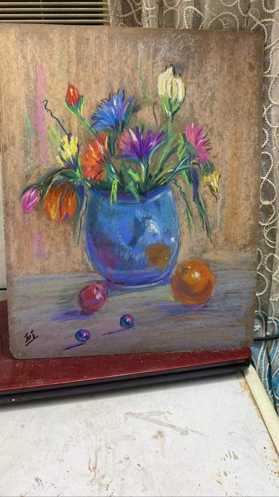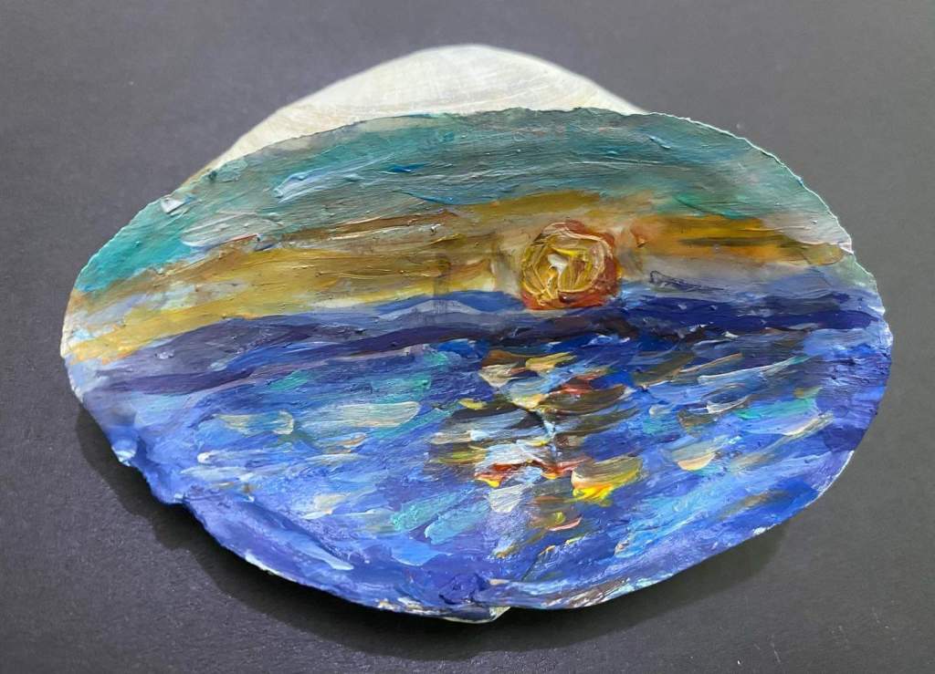 وكرسّامة شغوفة بالفن التّشكيليّ تحبّ الرّسم على الحصى حسب أشكالها دون أن تهتم بأحجامها وهي التي تعشق الرّسم التعبيري بطقوسه ونواميسه وكثيرا ما تتلألأ لوحاتها عطرا وأزهارا لأنها تراها جميلة وملوّنة ورقيقة ولكنها قويّة بأشواكها تدافع بها عن نفسها، وكذلك هي معطاء وسخيّة كالمرأة.