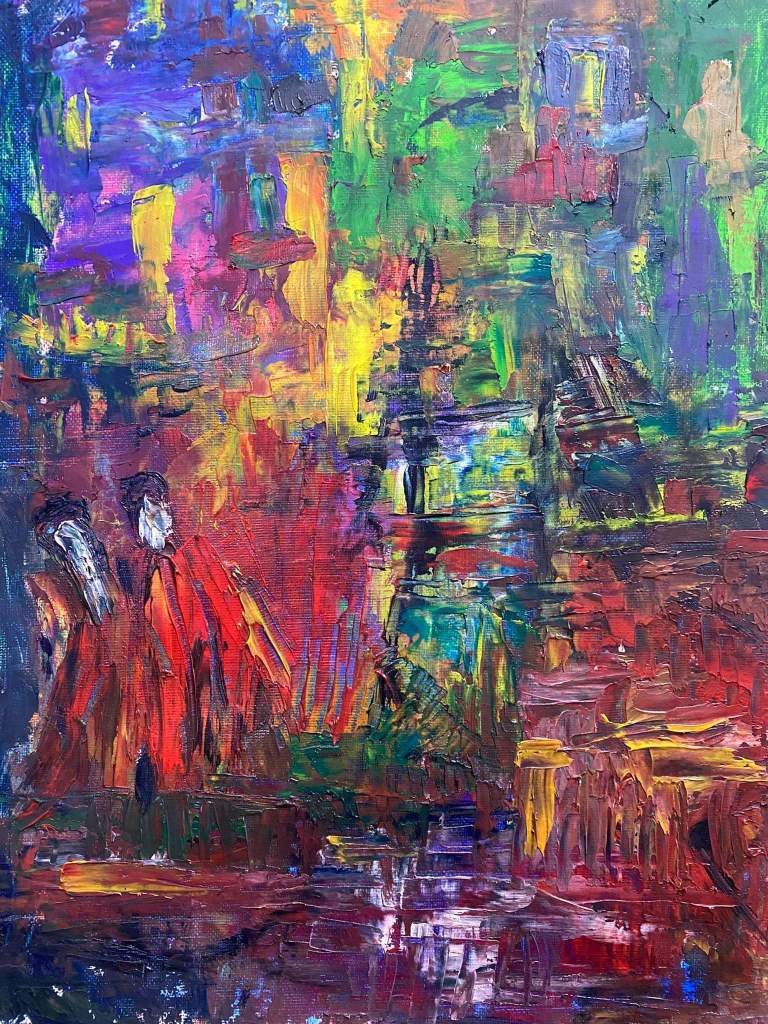 هي مبدعة برتبة رسّامة، تستلهم لوحاتها من خواطرها ثم قد يحصل العكس لمّا تُزهر خواطرها من رحم لوحاتها طالما هي بكل المواصفات تلميذة وفيّة من المدرسة الأدبيّة العراقيّة، بلاد الرّافديْن بأفذاذها أدباء وشعراء ورسّامين كتبوا للإنسانيّة ملاحمها الفكريّة انطلاقا من شارع المتنبّي أين ترتسم عناوين الكتب والمجلّدات والمخطوطات واللّوحات التشكيليّة منذ زمن الماضي البعيد.