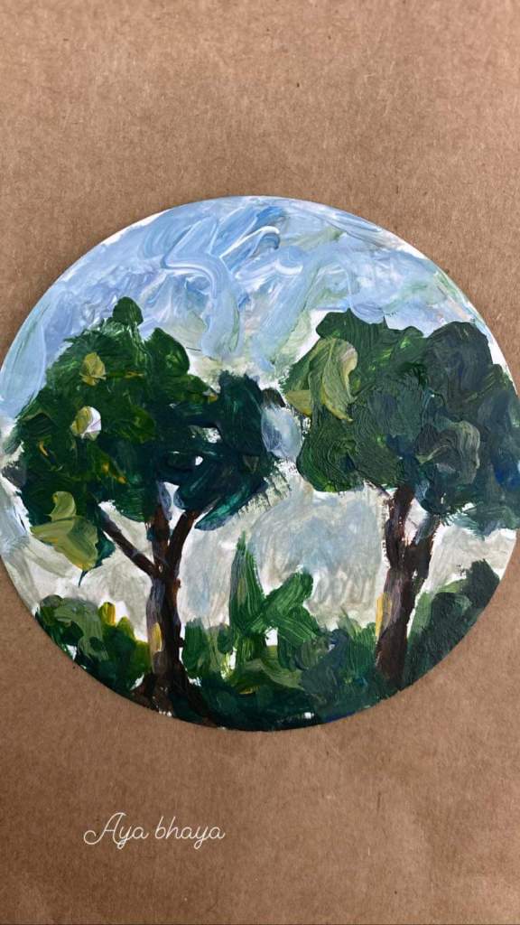 وضيفتنا آية هاني بهيّة ترسم في مواضيع متنوّعة وبمواد مختلفة حيث ترى أنّ اللّوحة ترتبط بالحالة النفسيّة للفنّان وما يتبعه من إرهاصات المجتمع وما يحصل فيه حيث أنّ ضيفتنا ترى فنّها مرآة تعكس واقعها شكلا ومضمونا، واقع العراق والوطن العربيّ.