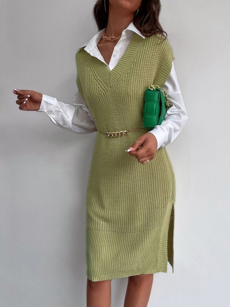 موضة التريكو لن تنتهي مهما حدث، سواء فساتين الصوف وتستطيعين ارتداء شيميزات بيضاء أو سوداء تحتها دون التقيد بچاكت.