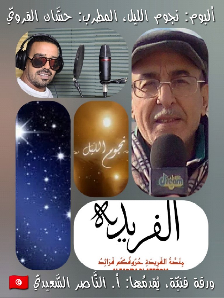 تابعوا معنا كليب أغنية ” نجوم اللّيل ” لتتمتّعوا بالفن التونسيّـ القيروانيّ صوتا وكلمة ولحنا، وحتما سيتواصل الإبداع من قبل ضيفنا المطرب حسّان المثناني ابن القيروان الأصالة والعطاء الفكري والفنّي.