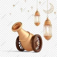 فجأة تتالتْ طلقاتُ المدفع يتردّدُ صداها في أنحاء الحيّ وقد بعثتْ في المكان رهبةً وخشوعًا وقداسةً، فهبَّ الجميعُ، صغارا وكبارا، كهولا وشيوخا، رجالا ونساء يستقبلون شهر رمضان بفرحة لا تُوصفُ.