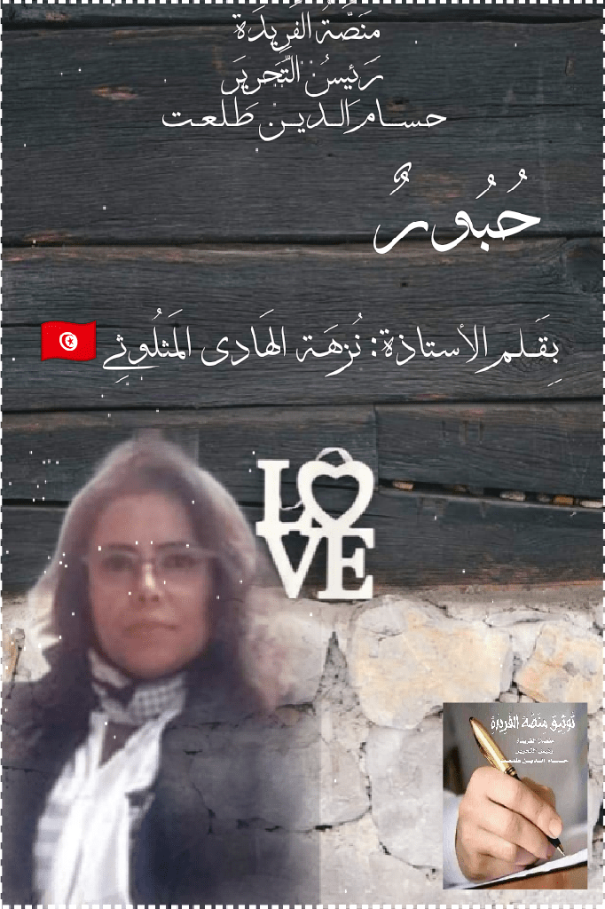 حُبُورٌ، بِـقَــلـم الشَّاعرة: نُزهَة الهَادي المَثلُوثِي 🇹🇳 🇪🇬 البحر الكَامل، مِنَصَّةُ الفَرِيدَةِ رَئِيسُ التَّحرِير حـســــام الـــديـــن طـلـعــت