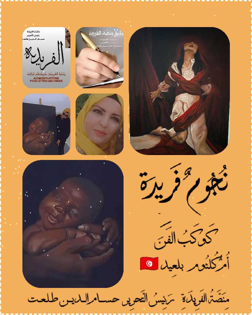 💎 مِنَصَّةُ الفَرِيدَةِ 💎حُرُوفُكُم فَرَائِدُرَئِيسُ التَّحرِيرحـســــام الـــديـــن طـلـعــتhttps://alharfuarraqypoem.poetry.blog/……………………………………………………………. السِّيرةُ الذَّاتيَّةُ لكوكب الفن الفَنَّانَة: أُمُّ كُلثُوم بلعِيد 🇹🇳……………………………….. أُمُّ كُلثُوم بلعِيد: فنانة تشكيلية تونسية، عصامية التكوين، وعضوة في اتحاد الفنانين التَّشكيلين التونسيين، بدأت مسيرتي الفنية منذُ الصغر، حيث شاركت في عدة تظاهرات ثقافية وفنية ومعارض جماعية وفردية، ونلت عدة شهائد تقديرية وفزت بالمراكز الاولى ضمن مسابقاتمتابعة قراءة “السِّيرةُ الذَّاتيَّةُ لكوكب الفن، الفَنَّانَة: أُمُّ كُلثُوم بلعِيد 🇹🇳 🇪🇬 مِنَصَّةُ الفَرِيدَةِ رَئِيسُ التَّحرِير حـســــام الـــديـــن طـلـعــت”