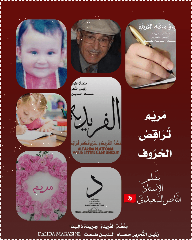 خاطرةٌ شعريّةٌ للطّفل، مريمُ تراقصُ الحروفَ، بِـقَــلـم الأستاذ: النَّاصر السَّعيديِّ 🇹🇳 🇪🇬 مِنَصَّةُ الفَرِيدَةِ جَـرِيـدَة دَالِـيـدَا DALIDA MAGAZINE رَئِيسُ التَّحرِير حـســــام الـــديـــن طـلـعــت