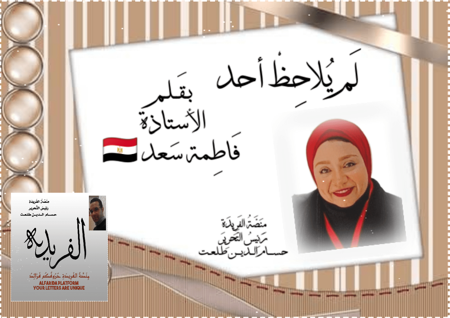 لَم يُلاحِظْ أحَد، بِـقَــلـم الأستاذة: فَاطِمة سَعد 🇪🇬 مِنَصَّةُ الفَرِيدَةِ رَئِيسُ التَّحرِير حـســــام الـــديـــن طـلـعــت