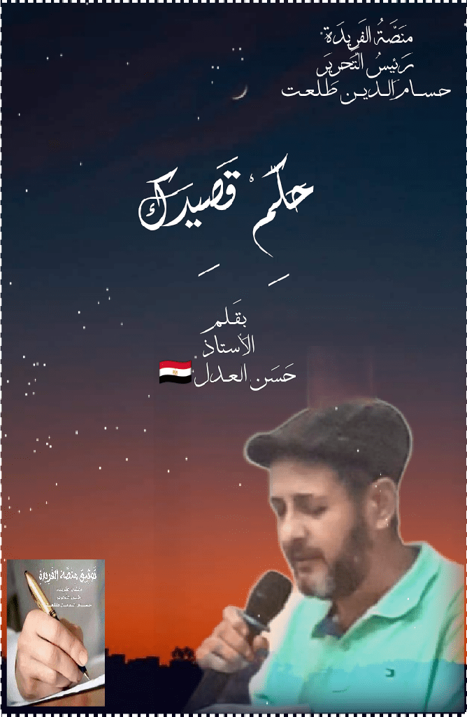 حكّمْ قصيدك، بِـقَــلـم الأستاذ: حَسَن الـعــدل 🇪🇬 مِنَصَّةُ الفَرِيدَةِ رَئِيسُ التَّحرِير حـســــام الـــديـــن طـلـعــت