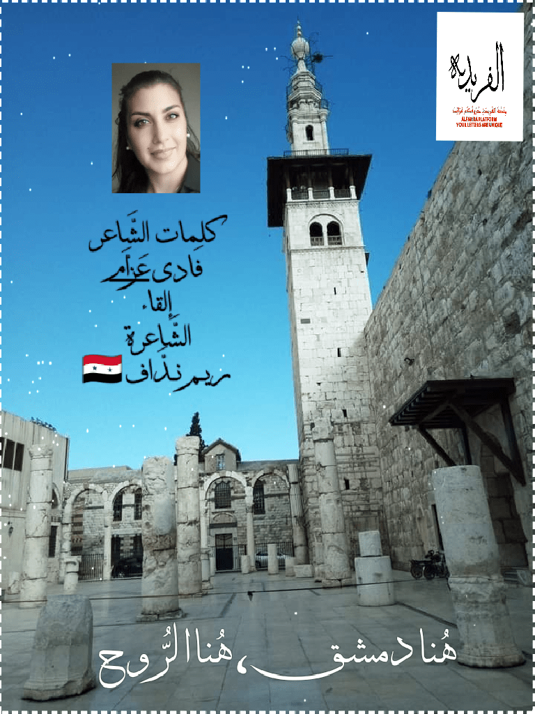 هُنا دمشق، هُنا الرُّوح.. كلمات الشَّاعر: فَادي عَزَّام، إلقاء الشَّاعرة: ريــم نــدَّاف 🇸🇾🇪🇬 مِنَصَّةُ الفَرِيدَةِ رَئِيسُ التَّحرِير حـســــام الـــديـــن طـلـعــت