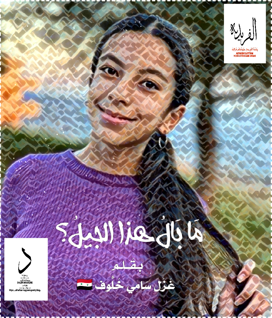مَا بَالُ هذا الجِيل..؟! بِـقَــلـم الأستاذة: غَزَل سَامِي خَلُّوف 🇸🇾 🇪🇬 DALIDA MAGAZINE مِنَصَّةُ الفَرِيدَةِ رَئِيسُ التَّحرِير حـســــام الـــديـــن طـلـعــت
