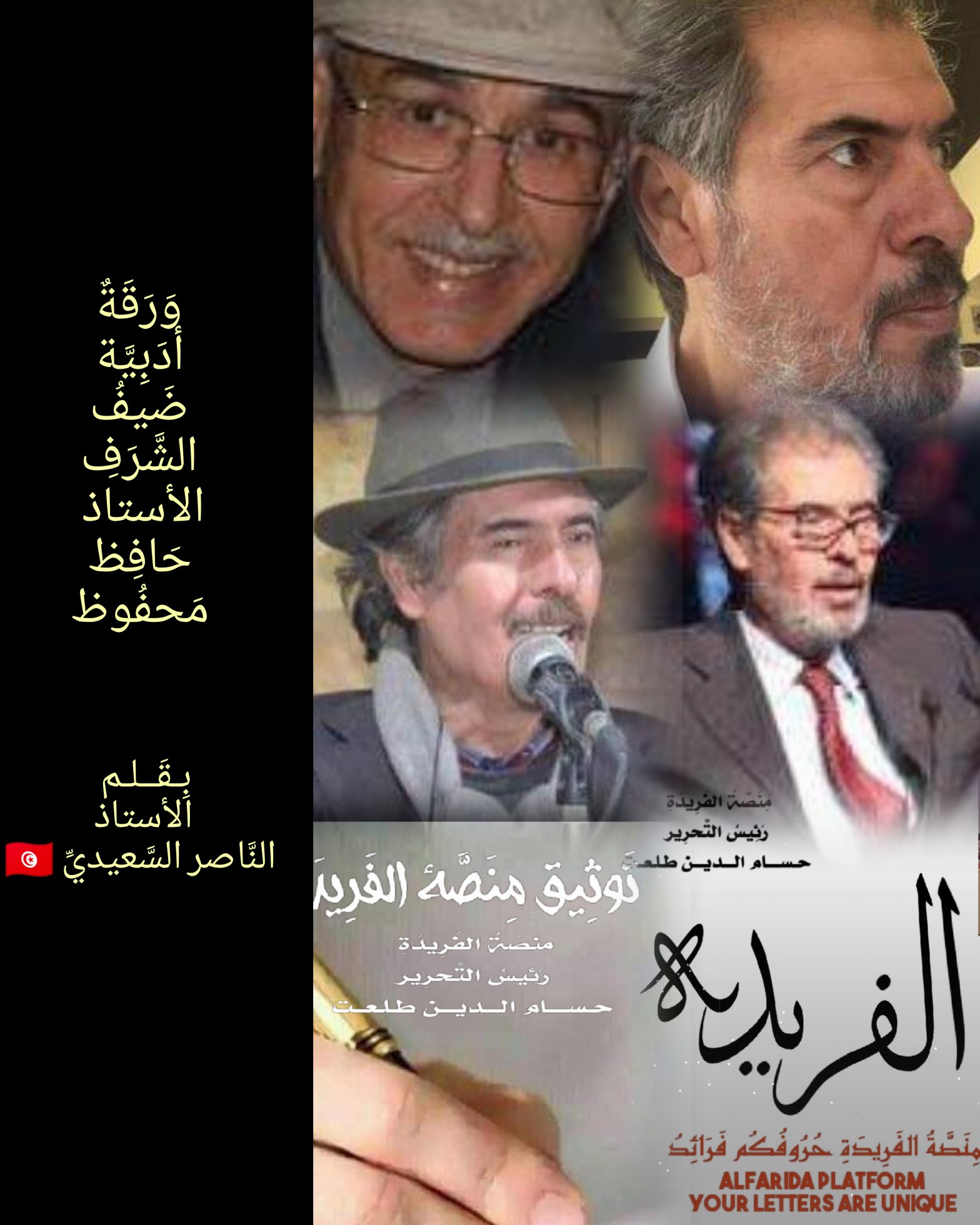 ورقة أدبيّة.. ضيف الشّرف: الكاتب التّونسي حافظ محفوظ، بقلم: الأستاذ /النَّاصر السَّعيديِّ 🇹🇳🇪🇬 مِنَصَّةُ الفَرِيدَةِ رَئِيسُ التَّحرِير حـســــام الـــديـــن طـلـعــت