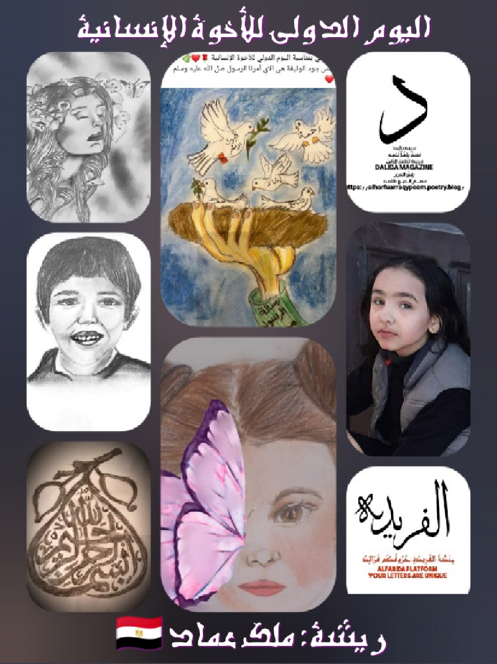 🌼 جَـرِيـدَة دَالِـيـدَا 🌼نَـصـنَعُ طِـفْــلًا لـلـغَــدجَـرِيـدَة الـطِّـفـلِ الأوُلـىٰ🌼 DALIDA MAGAZINE 🌼رَئِيسُ التَّحرِيرحـســــام الـــديـــن طـلـعــت………………………………….https://alharfuarraqypoem.poetry.blog/…………………………………فريدة كرم من مصررسّامة بعبق الإبداع وعطر التّاريخيقدّمها: أ. الناصر السعيدي 🇹🇳…………………………………فريدة كرم: 11 سنة، تلميذة بالصف السّادس ابتدائي بمدرسة الحريّة القوميّة للّغات، سليلة مصر المجد والتّاريخ وابنة الجيزة مدينة ضاربة في الحضارات الإنسانيّة بشهرتها التّاريخيّة الباهرة قديماوحاضرا، هي مهووسة بالفنّ التشكيليمتابعة قراءة “فريدة كرم 🇪🇬رسَّامة بعبق الإبداع وعطر التاريخ.. يقدمها الأستاذ.. الناصر السعيدي 🇹🇳 DALIDA MAGAZINE .. مِنَصَّةُ الفَرِيدَةِ.. رَئِيسُ التَّحرِير حـســــام الـــديـــن طـلـعــت.”