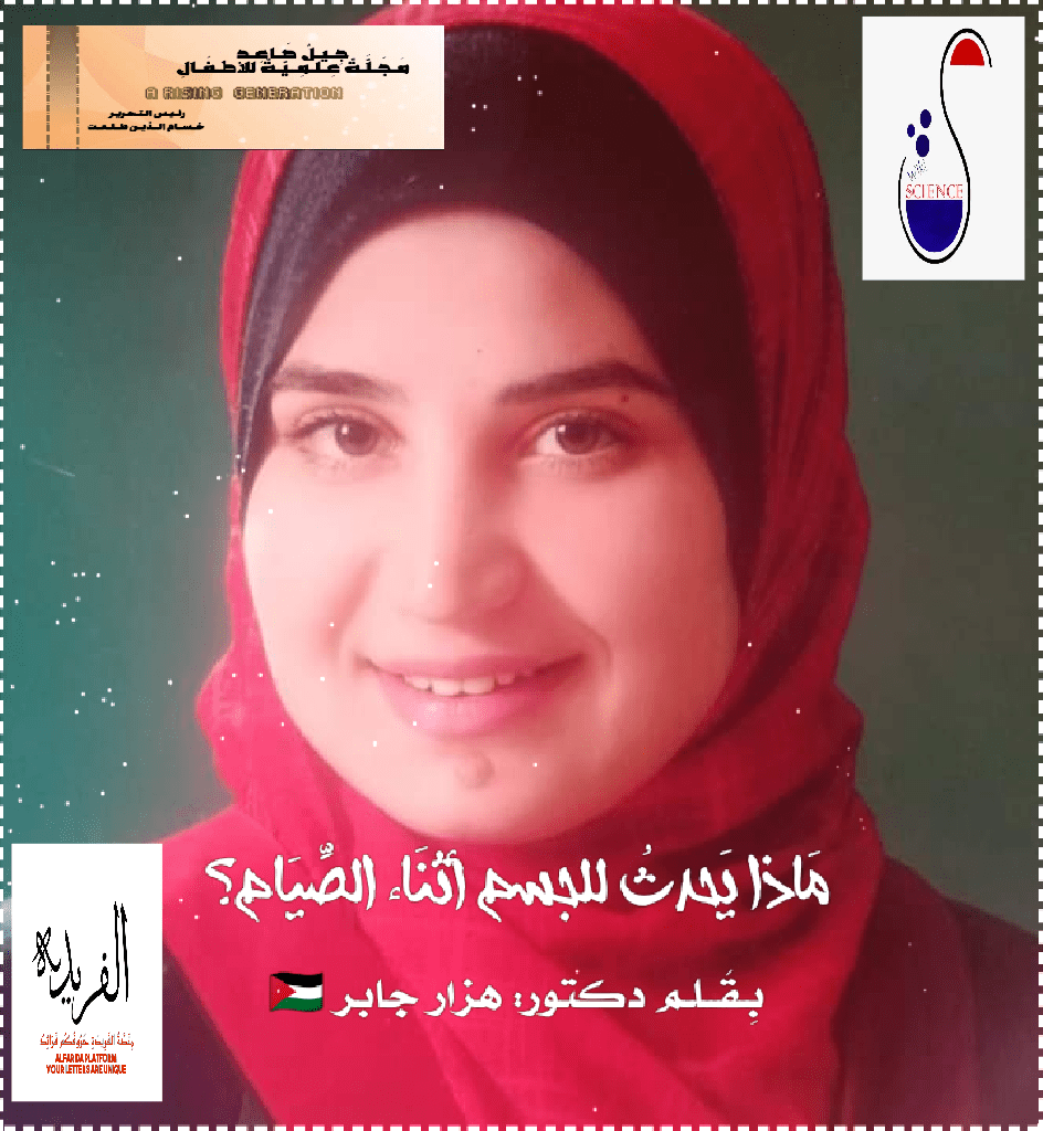 مَاذا يَحدثُ للجسم أثنَاء الصِّيَام؟ بِـقَــلـم دكتور: هزار جابر 🇯🇴 🇪🇬 جِــيــلٌ صَــاعِــد مَــجَــلَّــةٌ عِــلــمِــيّــةٌ للأطــفَــالِ، مِنَصَّةُ الفَرِيدَةِ رَئِيسُ التَّحرِير حـســــام الـــديـــن طـلـعــت