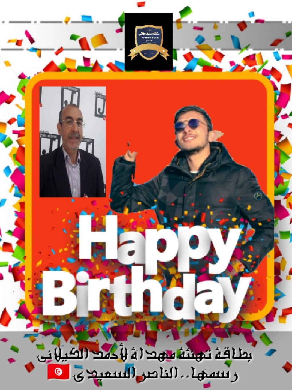 بطاقة تهنئة مهداة للشبل أحمد توفيق الكيلاني.. قبلة على الجبين في عيدك ال 24.. يرسمها.. الأستاذ.. الناصر السعيدي .. تونس 🇹🇳.. 💎 مِنَصًَةُ الحَرْفِ الرَّاقِي💎.. رئيس التحرير .. حسام الدين طلعت ..