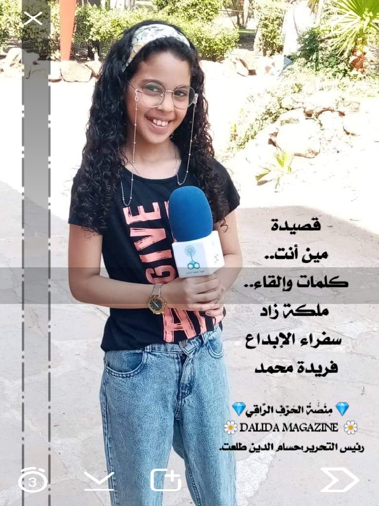 قصيدة.. مين أنت .. كلمات وإلقاء .. ملكة زاد سفراء الإبداع.. الموهبة.. فريدة محمد.. منصة الحرف الراقي.. DALIDA MAGAZINE.. رئيس التحرير .. حسام الدين طلعت.
