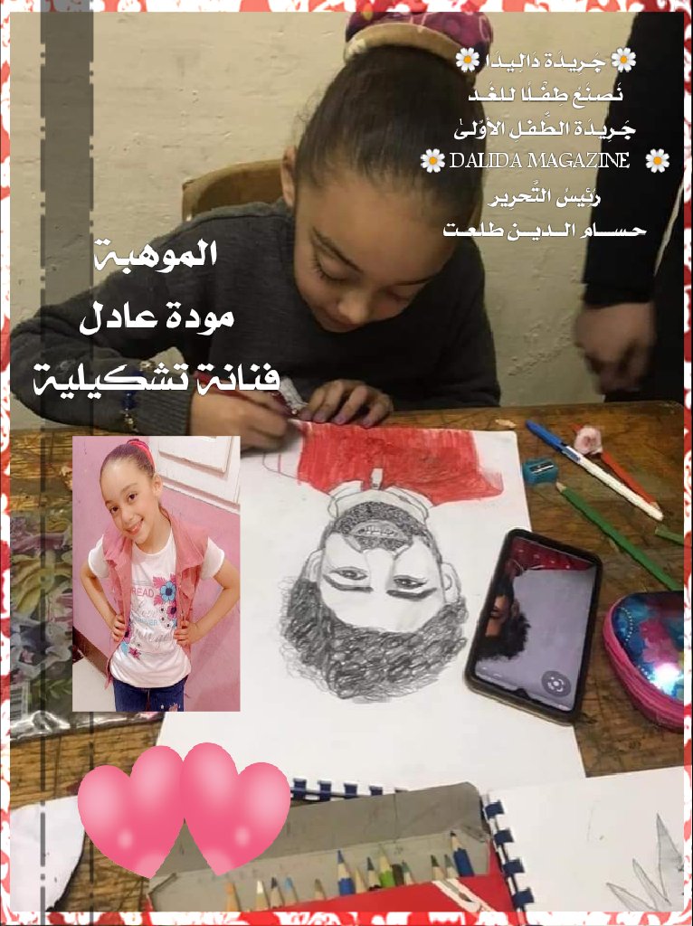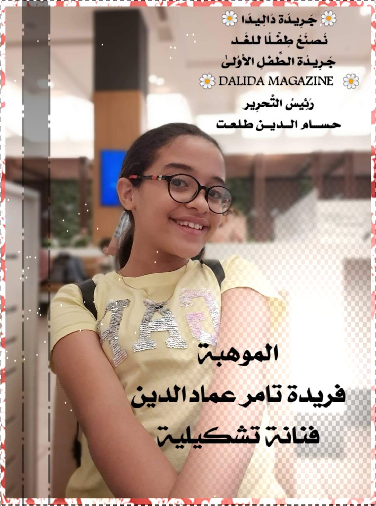 🌼 جَـرِيـدَة دَالِـيـدَا 🌼نَـصـنَعُ طِـفْــلًا لـلـغَــدجَـرِيـدَة الـطِّـفـلِ الأوُلـىٰ🌼 DALIDA MAGAZINE 🌼رَئِيسُ التَّحرِيرحـســــام الـــديـــن طـلـعــت………………………………الموهبة: فريدة تامر عمادالدين.العمر: 11 عام.فنانة تشكيلية.