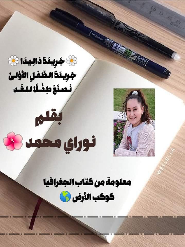 معلومة من كتاب الجغرافيا… بقلم الكاتبة الناشئة.. نوراي محمد.. 💎 مِنَصًَةُ الحَرْفِ الرَّاقِي💎.. DALIDA MAGAZINE .. رئيس التحرير .. حسام الدين طلعت.