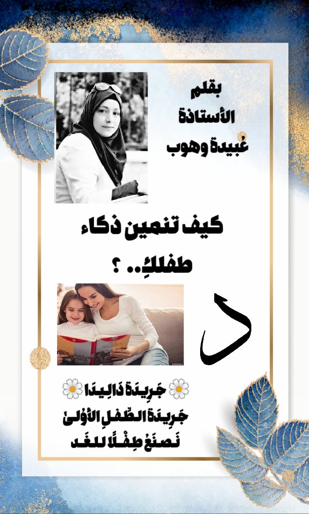 كيف تنمين ذكاء طفلك.. ؟ .. إعداد وتقديم.. الأستاذة .. عُبيدة وهوب سوريا 🇸🇾💎 مِنَصًَةُ الحَرْفِ الرَّاقِي💎 رئيس التحرير .. الأستاذ .. حسام الدين طلعت .. 🇪🇬