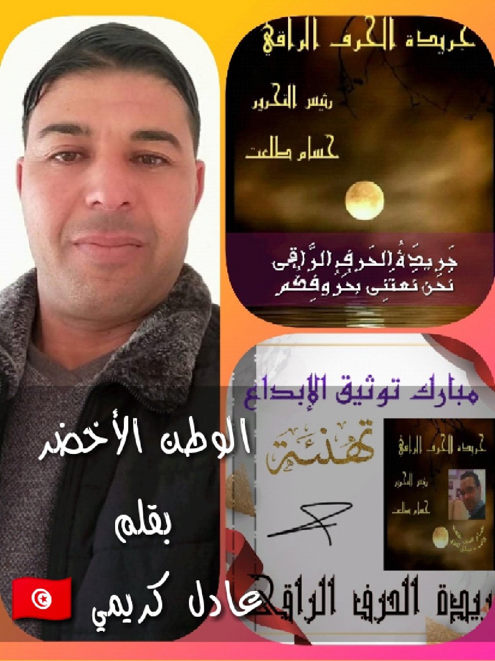 الوطن الأخضر .. بقلم .. الأستاذ .. عادل كريمي .. تونس 🇹🇳.. جريدة الحرف الراقي .. مصر 🇪🇬.. رئيس التحرير .. الأستاذ .. حسام الدين طلعت ..