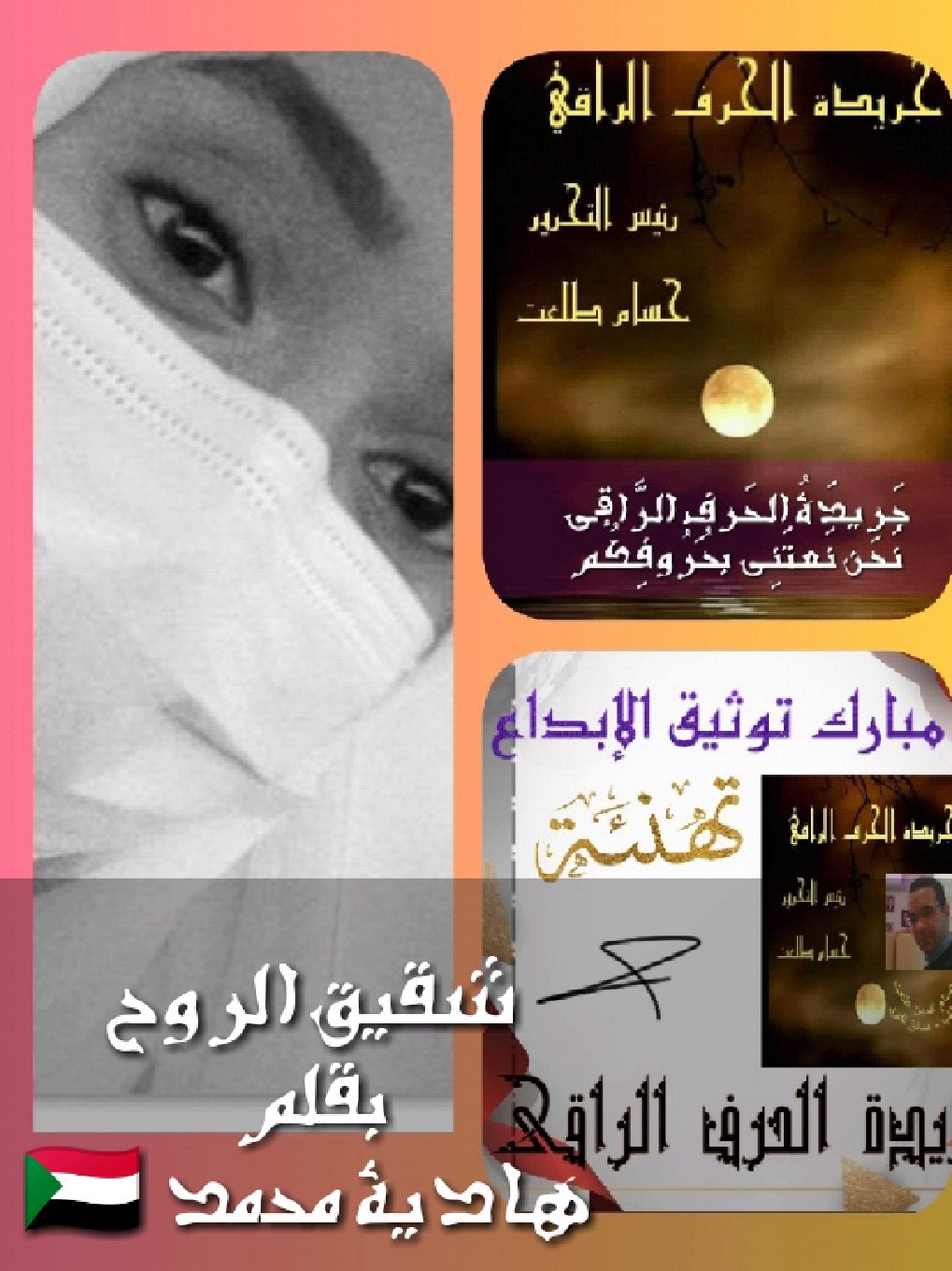 🖋️🖋️هادية محمد أحمدمن السودانأدرس كلية التخدير بالسودان ” جامعة الجزيرة”كاتبة لدي منصة النورس الثقافية للإبداعهوايتي الكتابة أعشقها كاتبة نصوص نثرية حرة وأحياناً أتلذذ بكتابة الشعر..من محبي الإذاعة والإلقاء الشعري مهتمة بفن الصوت لدي صوتيات باسمي“Hadia Mohammed”مقدمة برنامج “كوشيات” في منصة شغف“برنامج يخبرنا عن جميع أنحاء السودان وثقافاتهم”🖋️🖋️الكتابة أنارت طرقي ووجدت فيها ذاتي وواجهت بها مخاوفي💛بتمنىمتابعة قراءة “شقيق الروح .. بقلم .. الأستاذة.. هادية محمد .. السودان 🇸🇩.. جريدة الحرف الراقي .. 🇪🇬.. رئيس التحرير .. الأستاذ .. حسام الدين طلعت ..”