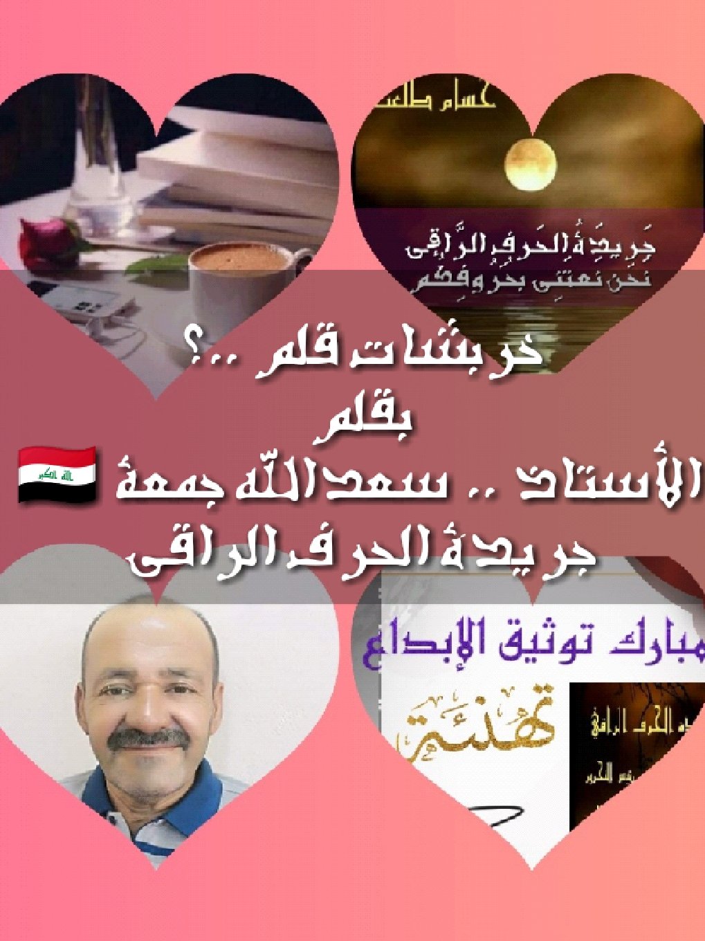 خربشات قلم… ؟ بقلم الشاعر والأديب.. سعدالله جمعة.. العراق 🇮🇶.. جريدة الحرف الراقي .. 🇪🇬.. رئيس التحرير .. الأستاذ .. حسام الدين طلعت ..