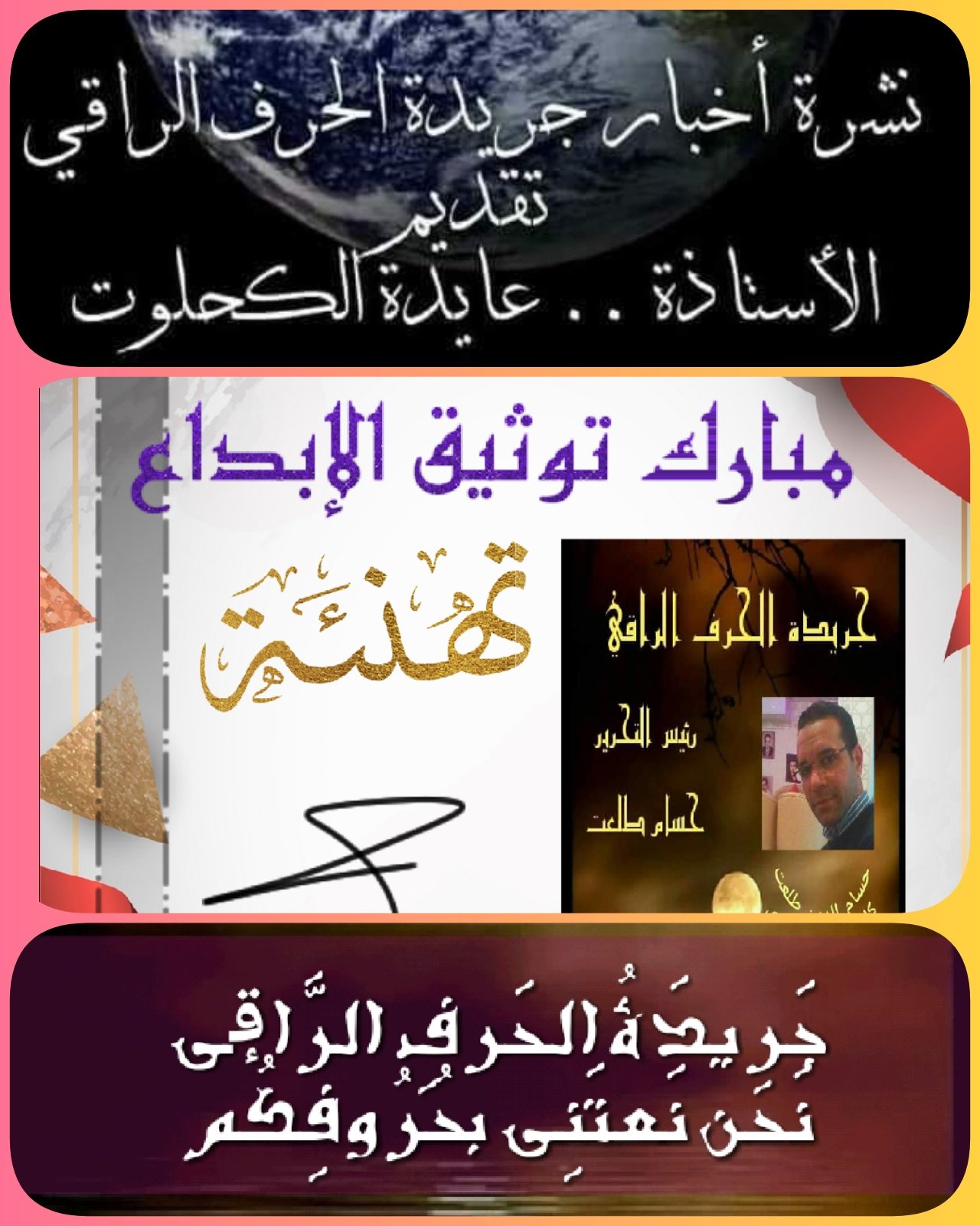 أخبار جريدة 📰الحرف الراقي .. الركن السياسي.. رئيس التحرير .. الأستاذ .. حـسـام الـديـن طـلـعـت .. إعداد وتقديم .. الأستاذة.. عايدة الكحلوت .. 🇵🇸🇪🇬