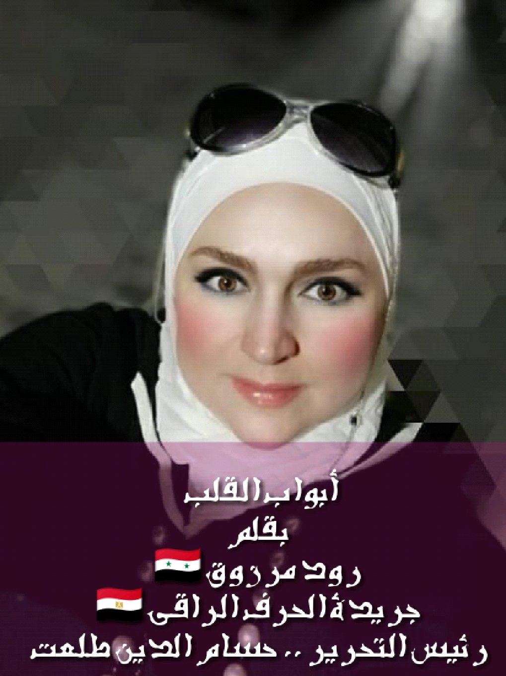 مواهب جريدة النيل المصرية .. تقدم.. الكاتبة .. لؤى حكيمي … تونس 🇹🇳.. جريدة النيل المصرية .. رئيس مجلس الإدارة … الأستاذة … هبة صلاح الدين .. رئيس التحرير .. الأستاذ .. حسام الدين طلعت . 🇪🇬