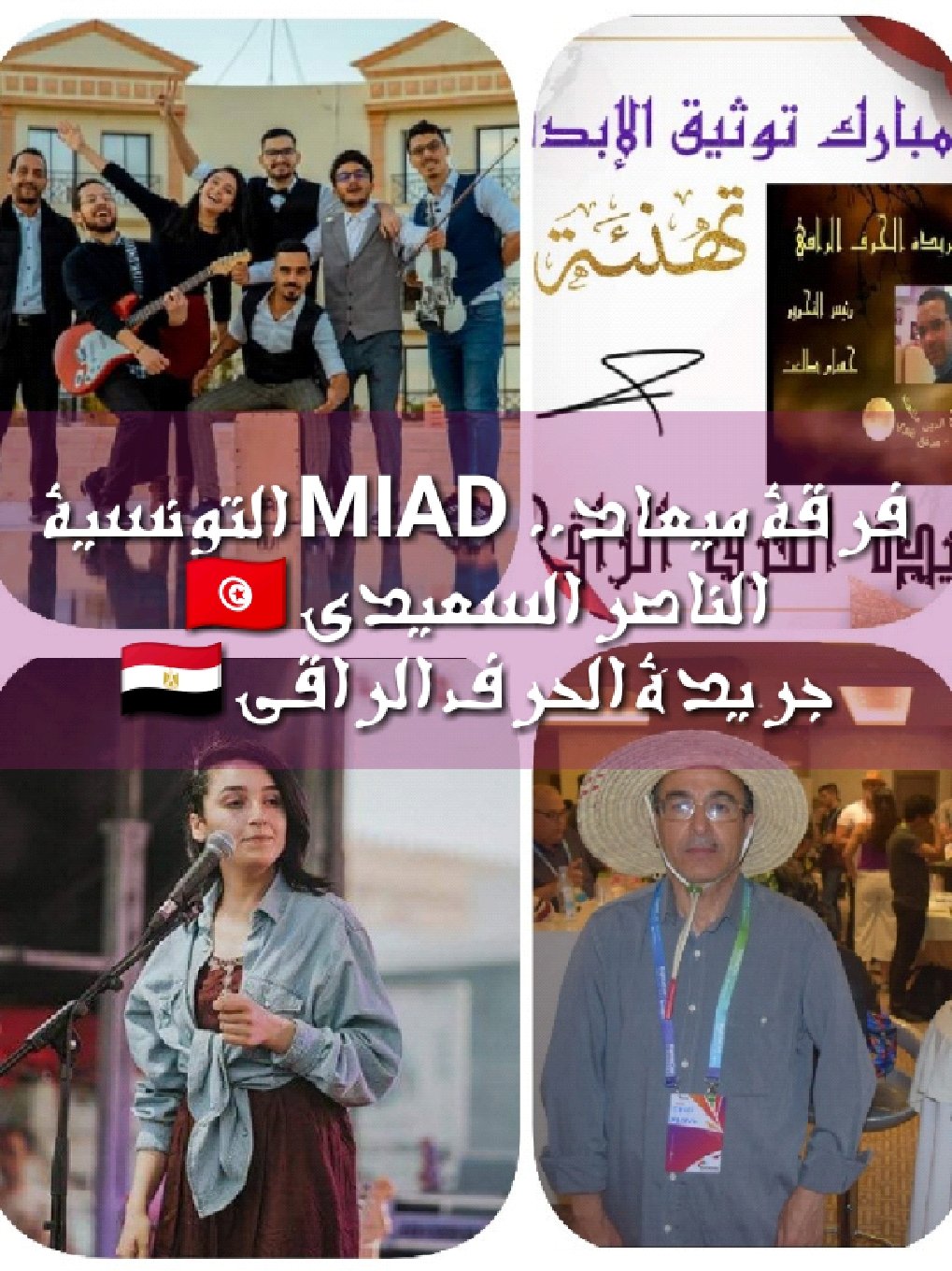 فرقة.. ميعاد… MIAD.. الفنية.. يغنون للسلام والحب والحنين.. تقديم .. الأستاذ .. الناصر السعيدي.. تونس 🇹🇳🇪🇬.. جريدة الحرف الراقي .. رئيس التحرير .. الأستاذ .. حسام الدين طلعت ..
